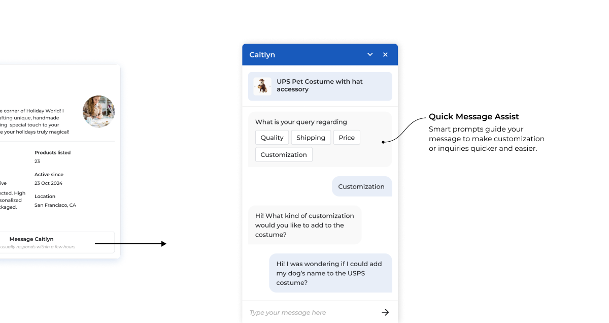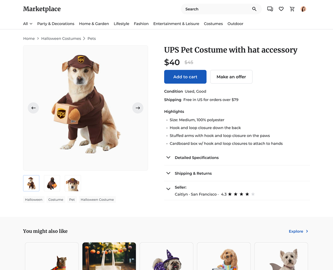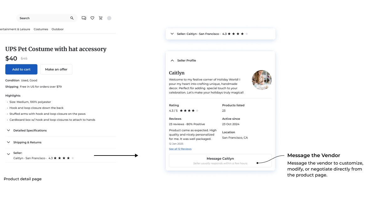 In a diverse holiday-focused marketplace with C2C and small business sellers, users often struggle to discover relevant products, evaluate sellers, or connect for negotiations—especially for secondhand items. A more informative, searchable, and communicative product details experience was needed to improve trust and conversion. As the product designer, I led the design of the product details page—from wireframes to final UI—working closely with engineers and the product team. I focused on improving searchability, transparency, and communication between buyers and sellers.