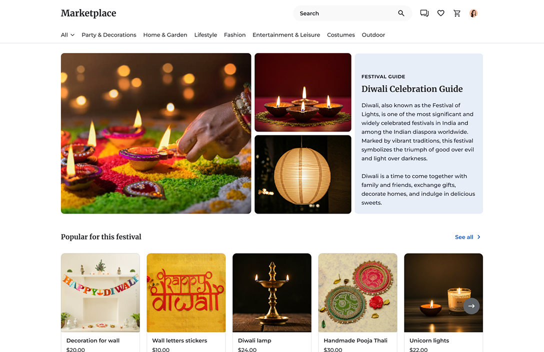 Discover, explore, and shop holiday-themed products from around the world—from festive decorations to thoughtful gifts and more.